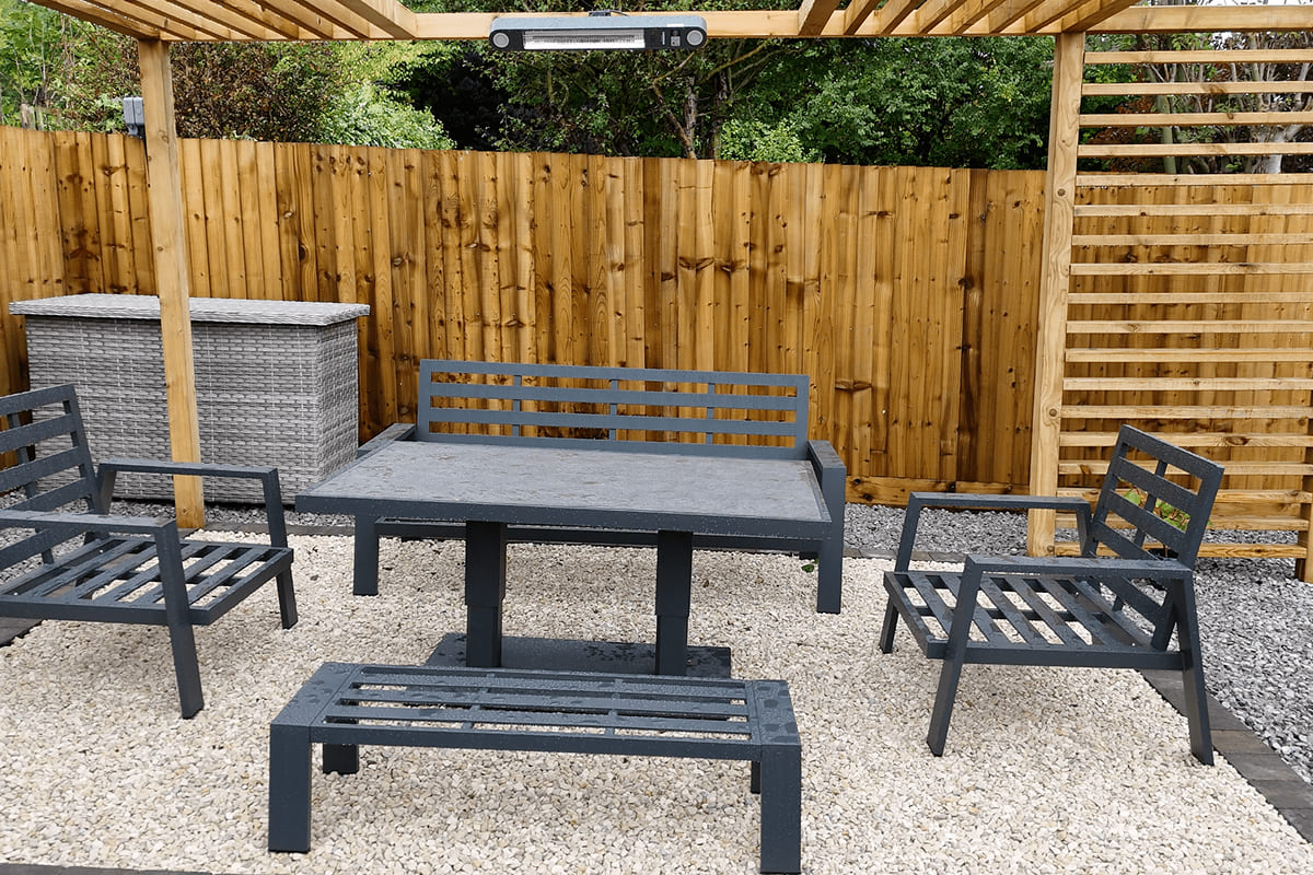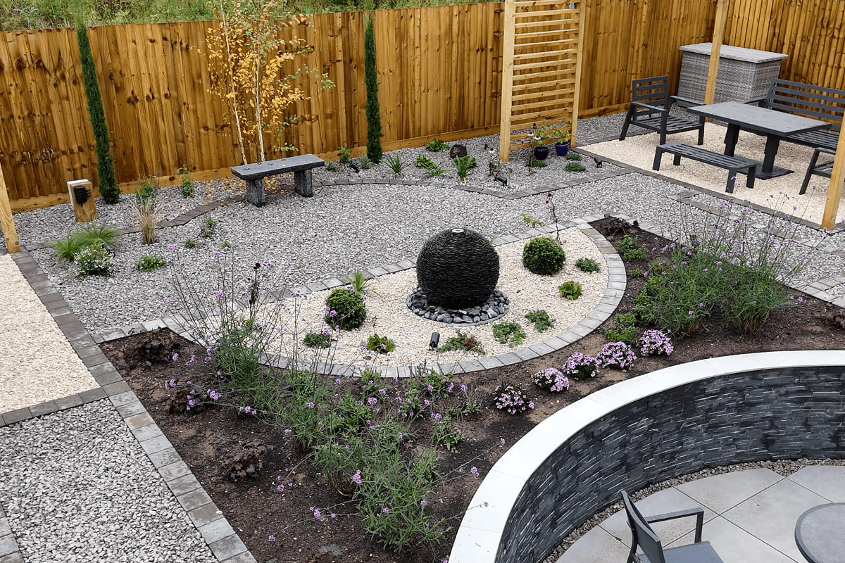 The client had moved to a new home, their first home together. They were keen to combine both of their ideas into the garden and make the area more usable. The garden had a tired, small dangerous patio area by the house which had apparent drainage issues. The one key ‘must have’, was both wanted a large patio area to entertain their families and some smaller areas to enjoy a morning coffee or an evening glass of wine. This was an exciting project as they were open to a design with no grass.