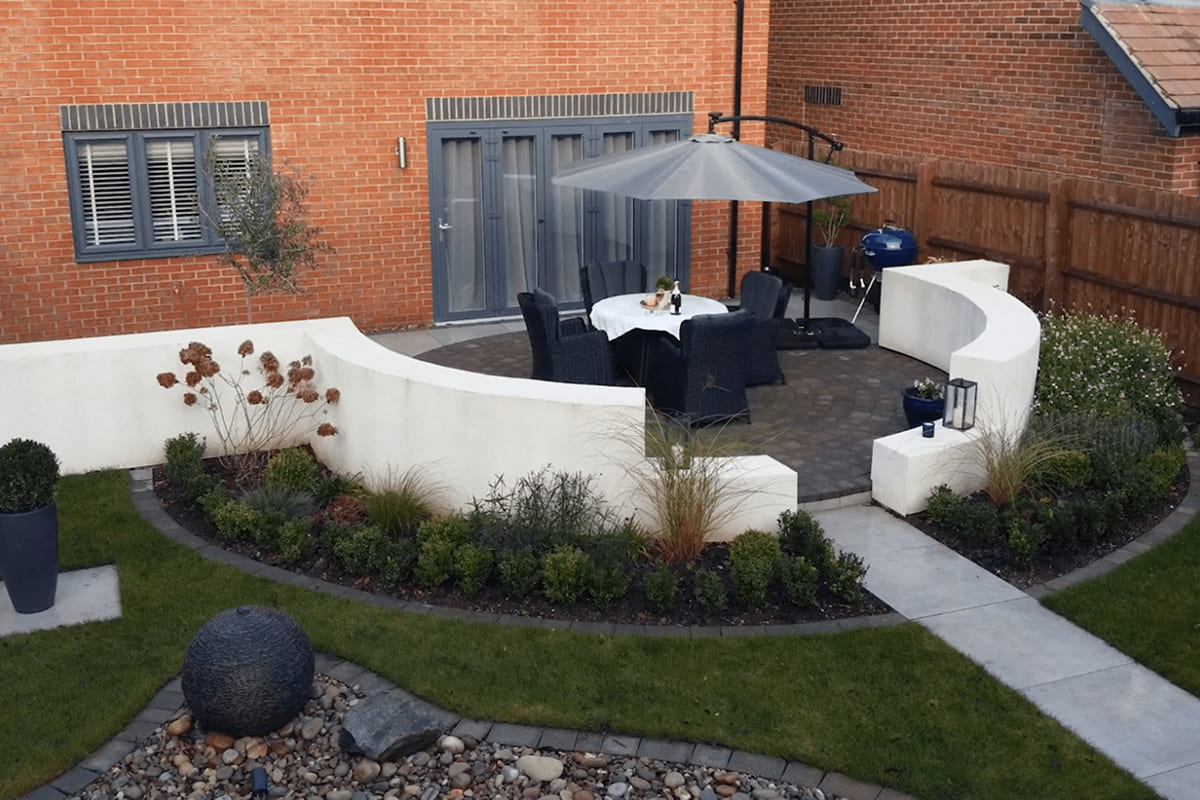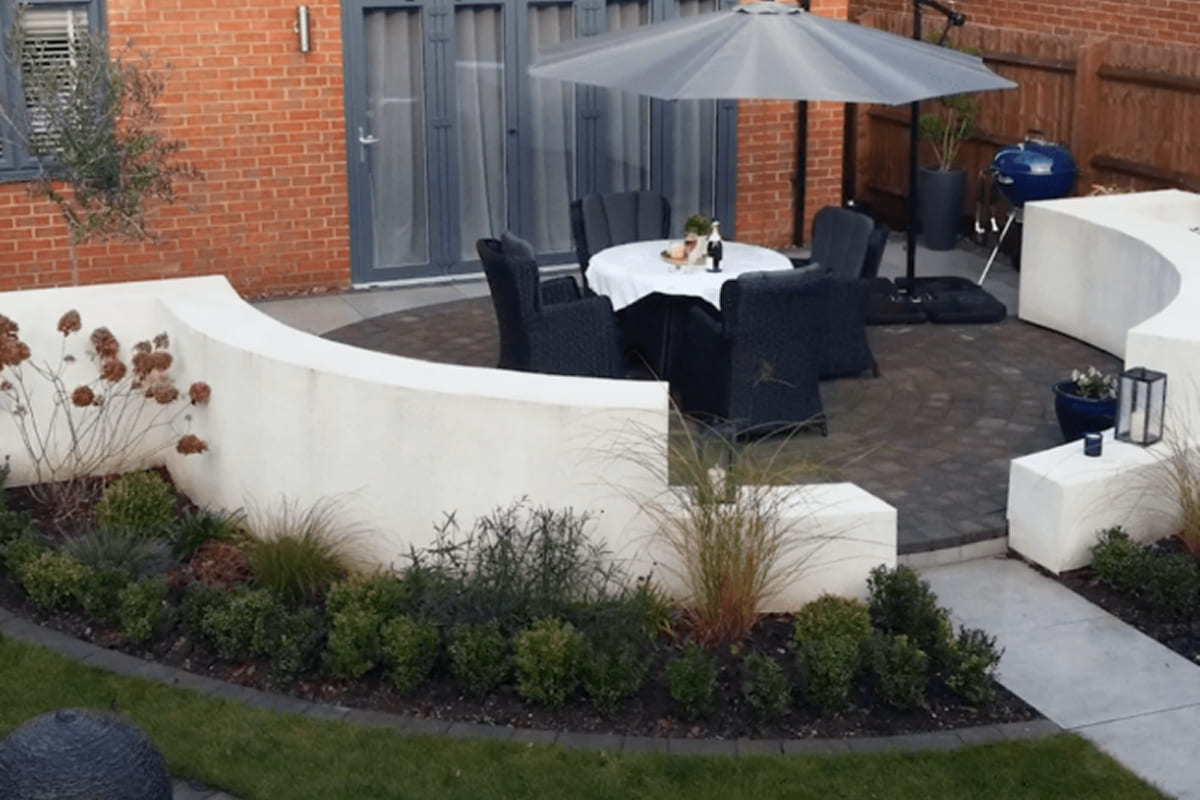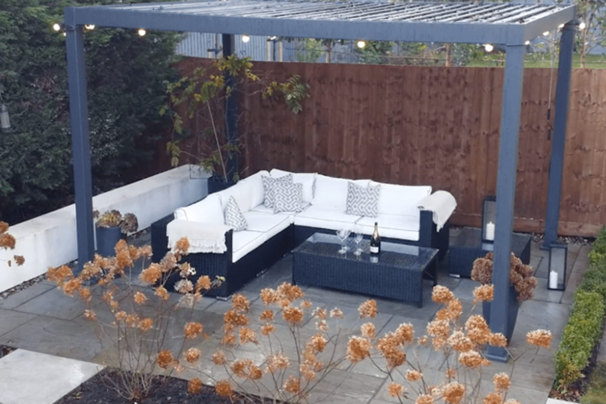 The client was embarking on a new chapter in her life, moving into a newly built property. She envisioned a garden that reflected this fresh start—relaxing, contemporary, and harmonious with her new home. Her ideal space featured clean lines, a white-rendered dining area, and an aluminium pergola for shaded relaxation. Surrounding plants were essential to provide height and movement, creating a tranquil and shaded atmosphere for our client to enjoy.